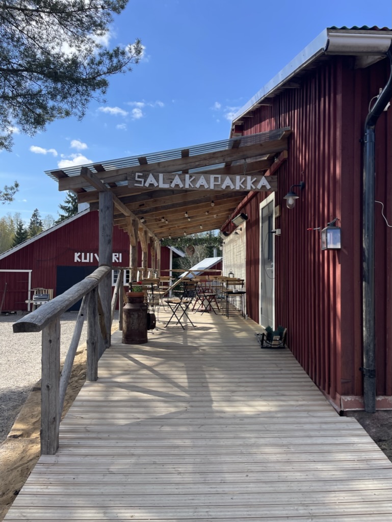 Salakapakka on tunnelmallinen juhla- ja kokoustila noin 40 henkilölle. Asiakkaiden käytössä on keittiö ja wc. Keittiön varusteluun kuuluvat astiasto 50 henkilölle, tarjoiluastiat, induktiotaso, jääkaappi, pakastin, mikro, kahvinkeitin ja vedenkeitin. Juhla- ja kokoustilasta löytyvät videotykki ja äänentoisto sekä mikrofoni. Tilassa on myös baaritiski sekä kaksi katettua terassia. Alueella toimii tilan wifi.