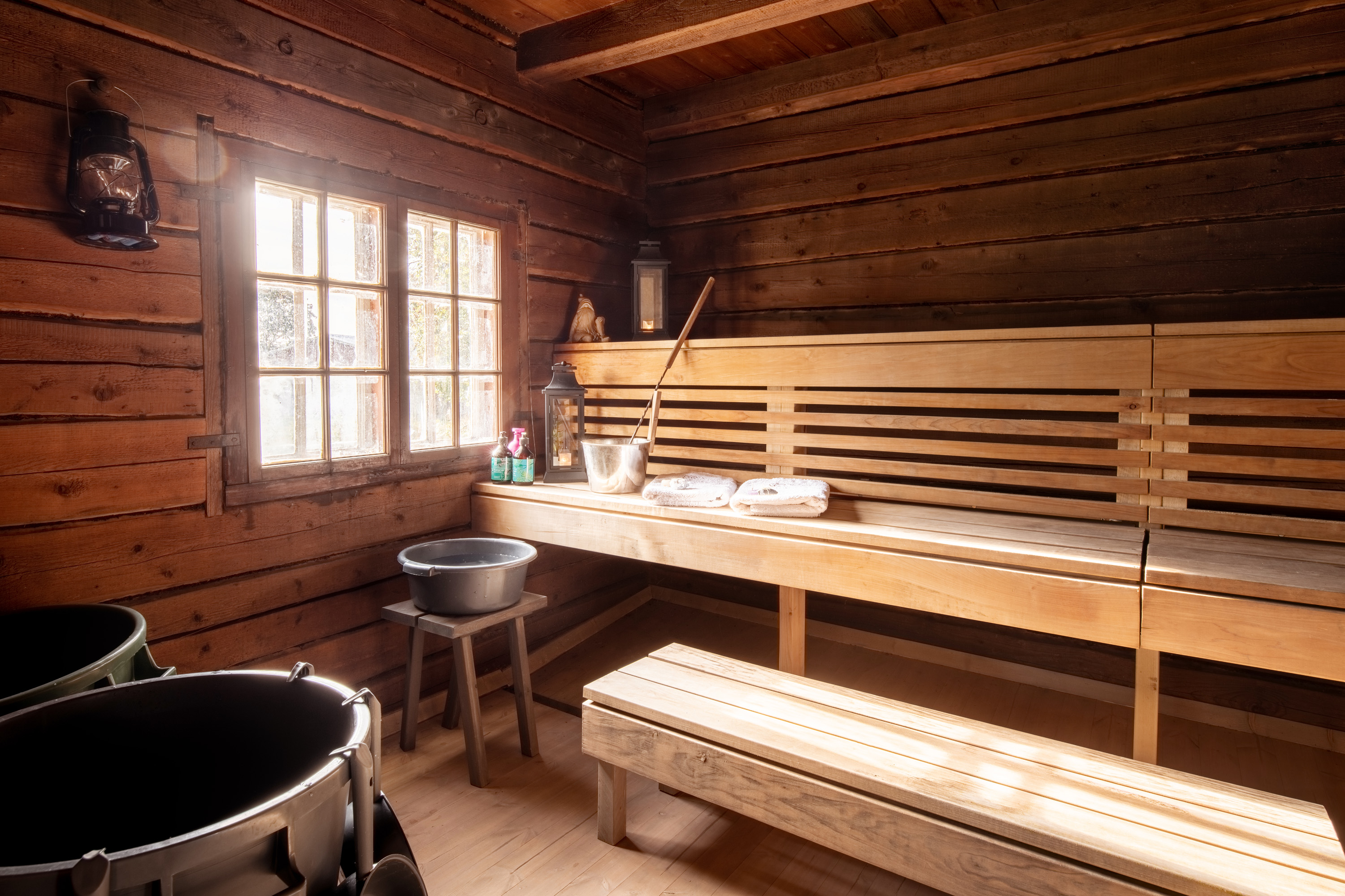 Kokouspäivän voit halutessasi kruunata puulämmitteisen hirsisaunan lempeissä löylyissä.